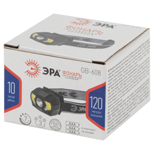 Фонарь налобный светодиодный ЭРА GB-608 на батарейках, 3xAAA, 5Вт, 7 режимов, черный |