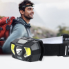 Эргономичный регулируемый ремешок надежно и мягко фиксирует налобник на голове. Выключатель/переключатель режимов удобно расположен в верхней части корпуса. Фонарь отличается повышенной дальностью LED-луча (120 метров) и оптимальным световым потоком (300 Лм). От одного комплекта алкалиновых батареек непрерывно светит 10 часов.
