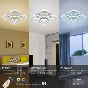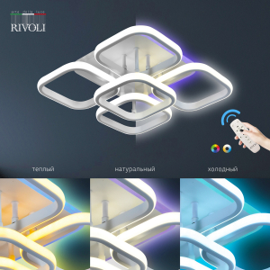 LED-люстра Hedwig от итальянского бренда Rivoli с дистанционной регулировкой яркости, выбором цветовой температуры и встроенной разноцветной RGB-подсветкой. Стоит купить такой практичный и эффектный светильник светодиодный потолочный для ремонта в стиле хай-тек, минимализм, модерн и любых современных пространств.