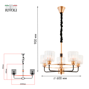 Описание: Rivoli Maria (арт. 1026-205) - хрустальная подвесная люстра, составляющая единую коллекцию с хрустальным бра (арт. 1026-401). Подвес люстры регулируется. Пять прозрачных плафонов расположены по кругу и объединены стильным металлическим обручем цвета латуни. Подвесные люстры Maria идеальны для классического стиля, набирающего популярность стиля модерн, станут хорошим решением для эклектичных дизайнерских интерьеров. Люстры в гостиную Maria созданы итальянским брендом Rivoli, изготовлены из легкого прочного металла и высококачественного европейского хрусталя. Рекомендуемые источники света для данной люстры - Е27 мощностью 40 Вт. Сочетание теплого оттенка латуни, контрастных черных элементов и прозрачности хрусталя создает неповторимый эффект. Эта покупка порадует вас, преобразит дом и впечатлит гостей!