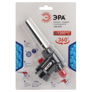 Газовая горелка на баллон с встроенным пьезоэлементом. Область применения: работа с термоусаживаемыми материалами, плавка и сварка изделий из стекла и пластмасс, разжигание огня (костер, мангал, камин и кальян), разморозка замков, водопроводных труб, удаление старой краски, обработка поверхностей и местный подогрев в производственных, лабораторных условиях, в мастерских.Система предварительного подогрева газовой смеси в змеевике внутри сопла позволяет вести работу под разными углами. Интенсивность пламени остаётся без изменений при вращении горелки в любых плоскостях на 360°