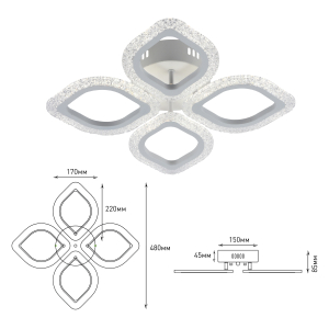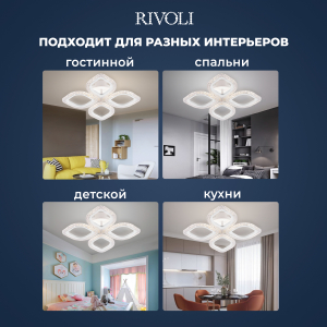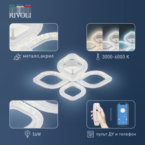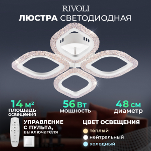 Описание: Rivoli Dietlinde - коллекция потолочных светодиодных люстр с пультом дистанционного управления, а также управлением через приложение смартфона. Эффектный дизайн в виде цветка. Вы можете купить люстру с 5 LED-лепестками (арт. 6049-105), 4 LED-лепестками одинакового размера (арт. 6049-106), 4 LED-лепестками разного размера (арт. 6049-108). Люстры потолочные светодиодные Dietlinde выполнены в базовом белом цвете, LED-лепестки украшены декоративной инкрустацией под сверкающий хрусталь. Пульт ДУ в комплекте, есть возможность управления со смартфона. LED-люстры Dietlinde оснащены функциями регулировки яркости и смены цветовых температур. Яркое ровное освещение данной люстры в гостиную создают мощные долговечные светодиоды нового поколения. Светодиодная люстра Rivoli Dietlinde с 4 плафонами-лепестками прекрасно впишется в любой современный интерьер. Положительные отзывы собирает ее дизайн - лаконичный и праздничный одновременно. Размер светодиодной люстры - 480*480*75 мм. Спешите купить!