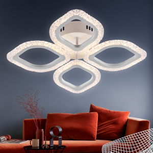 Rivoli Dietlinde - коллекция потолочных светодиодных люстр с пультом дистанционного управления, а также управлением через приложение смартфона. Эффектный дизайн в виде цветка. Вы можете купить люстру с 5 LED-лепестками (арт. 6049-105), 4 LED-лепестками одинакового размера (арт. 6049-106), 4 LED-лепестками разного размера (арт. 6049-108). Люстры потолочные светодиодные Dietlinde выполнены в базовом белом цвете, LED-лепестки украшены декоративной инкрустацией под сверкающий хрусталь.