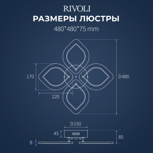 Светодиодная люстра Rivoli Dietlinde с 4 плафонами-лепестками прекрасно впишется в любой современный интерьер. Положительные отзывы собирает ее дизайн - лаконичный и праздничный одновременно. Размер светодиодной люстры - 480*480*75 мм. Спешите купить! |