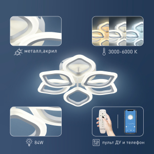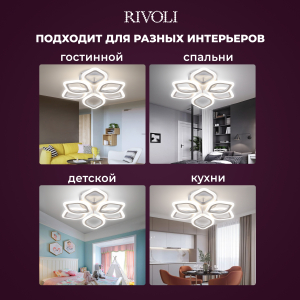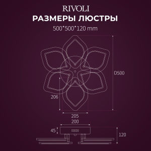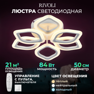 Описание: Светильник потолочный LED Rivoli Elena (арт. 6092-106) с 6 плафонами в форме лепестков. Освещаемая площадь LED люстры - до 23 м². Размеры - 500*500*120 мм. Красивая светодиодная люстра от итальянского бренда Rivoli - прекрасное решение для гостиной, спальни, детской комнаты. Выполненная в стиле модерн, эта люстра светодиодная не только качественно осветит ваш дом, но и привнесет в вашу жизнь положительные эмоции. В комплекте с LED люстрой Rivoli Elena поставляется пульт дистанционного управления. А скачав приложение, вы сможете дистанционно управлять люстрой через телефон. Не вставая с дивана, можно включить или выключить люстру, настроить комфортную яркость освещения, выбрать нужную температуру света (уютный теплый, нейтральный дневной или бодрящий холодный свет). Эта светодиодная люстра создана для вашего комфорта. Светодиодная технология LED люстры Rivoli Elena максимально экономична. В комнате будет очень светло, при этом вы сохраните ваш бюджет. Спешите купить LED люстру Elena!
