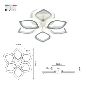 Светильник потолочный LED Rivoli Elena (арт. 6092-106) с 6 плафонами в форме лепестков. Освещаемая площадь LED люстры - до 23 м². Размеры - 500*500*120 мм. Красивая светодиодная люстра от итальянского бренда Rivoli - прекрасное решение для гостиной, спальни, детской комнаты. Выполненная в стиле модерн, эта люстра светодиодная не только качественно осветит ваш дом, но и привнесет в вашу жизнь положительные эмоции.