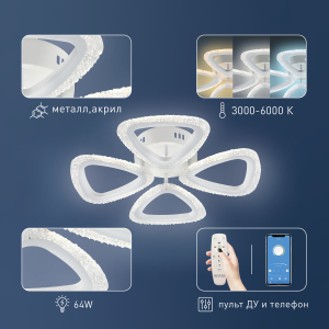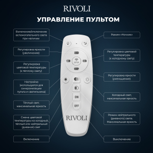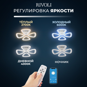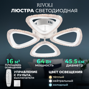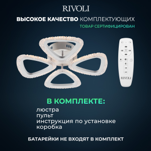 Описание: Мощный светильник Rivoli Alicia мощностью 64 Вт освещает помещения площадью до 16 м². Регулируемая цветовая температура от 2700 до 6000 К позволяет создать идеальное освещение в зависимости от времени суток. Режим ночника добавляет мягкий свет для ночного времени, создавая уютную атмосферу. Светильник изготовлен из высококачественного акрила, что придает ему стильный и современный вид. Светодиоды нового поколения обеспечивают безопасный для глаз свет. В комплекте все необходимые элементы для установки, универсальное крепление подходит для любых типов потолков. Батарейки для пульта не включены.