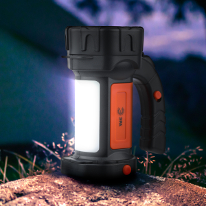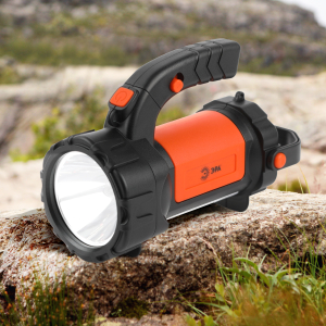Переносной прожектор ЭРА Альфа PA-606 имеет удобную ручку с прорезиненной кнопкой включения под пальцем, а также поворотный держатель для подвешивания. Вы можете использовать эту модель как мощный фонарь дальнего света или светильник с мягким рассеиванием светового потока. |