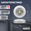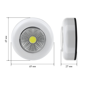 Светодиодный пушлайт ТРОФИ включается и выключается лёгким нажатием на корпус. Работает от 3 мизинчиковых батареек ААА. Одного комплекта алкалиновых элементов питания хватит на 5 часов непрерывной подсветки. Светит ярко благодаря современному COB-светодиоду. Источник света не перегорает и не тускнеет со временем. За счёт эргономичной круглой формы, малого веса и базового белого цвета фонарик прекрасно смотрится в любом интерьере. |