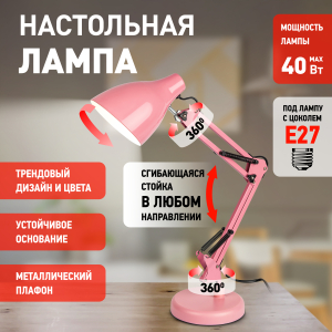 Трендовый дизайн и цвета. Металлические стойка и плафон. Выключатель на проводе. Высота расположения плафона регулируется сгибающейся стойкой. Направление света регулируется наклоном и поворотом плафона в любом направлении. Устойчивое основание. |