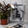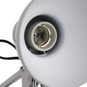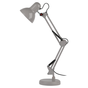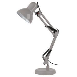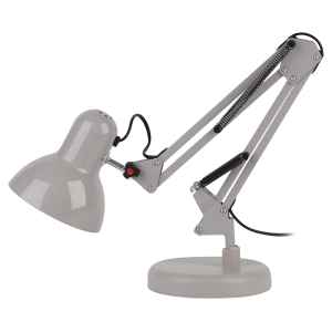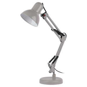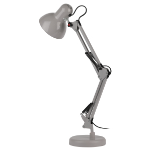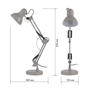 Светильник может использоваться с лампой накаливания, компактной люминесцентной лампой (КЛЛ) или светодиодной (LED) лампой. Устойчивое основание. Металлические стойка и плафон. Высота плафона регулируется двухсекционной сгибающейся стойкой. |