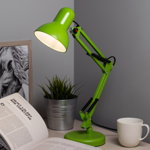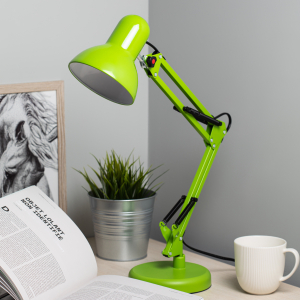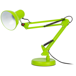 Светильник может использоваться с лампой накаливания, компактной люминесцентной лампой (КЛЛ) или светодиодной (LED) лампой. Устойчивое основание. Металлические стойка и плафон. Высота плафона регулируется двухсекционной сгибающейся стойкой. |
