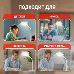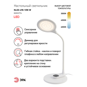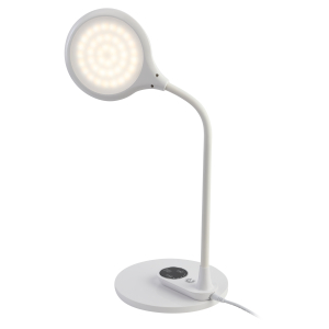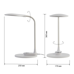 Настольный светильник со светодиодами (LED) в качестве источников света. Выбор цветовой температуры - 3 цвета: 3000К, 4500К, 6000К. Сенсорное переключение. Плавный диммер для регулировки яркости. Светильник сохраняет выбранные настройки при включении-выключении. Гибкая стойка. Съемное основание и возможность подвеса на стену. |