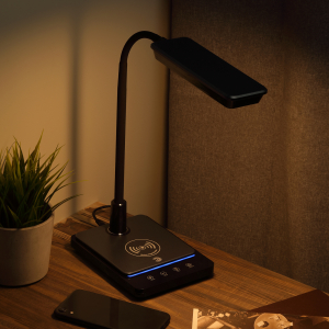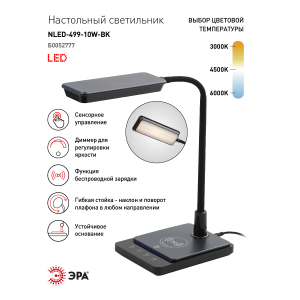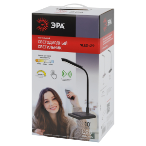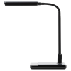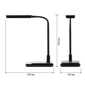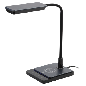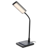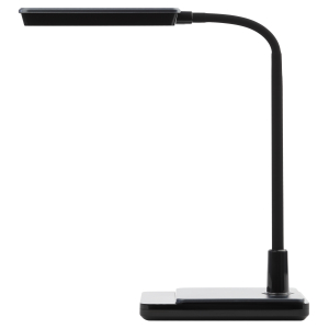 Настольный светильник со светодиодами (LED) в качестве источников света. Выбор цветовой температуры - 3 цвета: 3000К, 4500К, 6000К. Сенсорный переключатель на основании. Плавный диммер для регулировки яркости. Встроенный модуль Qi для беспроводной зарядки мобильных устройств. Светильник сохраняет выбранные настройки при включении-выключении. Гибкая стойка. |