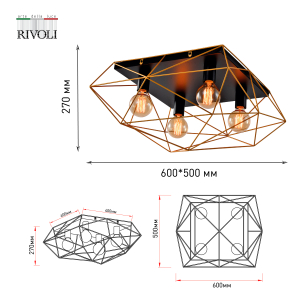 Описание: Потолочный светильник Rivoli Roxana изготовлен из прочного легкого металла со стойким гальваническим покрытием в актуальные цвета - черный и золото. Дизайн этой люстры на потолок с эффектным многогранным корпусом создан в Италии. Арматура выполнена высокоточной лазерной сваркой. Светильник потолочный Rivoli Roxana долгие годы будет радовать вас своим запоминающимся оформлением и качеством исполнения. В коллекции вы найдете геометричные люстры потолочные под разное количество ламп: 1, 2 и 4. Чтобы посмотреть их фото, скопируйте в поиск артикулы: 4097-201, 4097-312, 4097-304. Данный светильник на потолок под 4 лампы хорошо осветит площадь 12 м². Идеален для кухни, прихожей, спальни, комнаты подростка. Стоит купить светильник потолочный Rivoli Roxana для популярного стиля лофт. С помощью этой модели дизайнеры интерьеров успешно оформляют пространства с невысокими потолками, с натяжными потолками. Это удачное и простое решение для тех, кто хочет оригинально преподнести освещение в комнате.