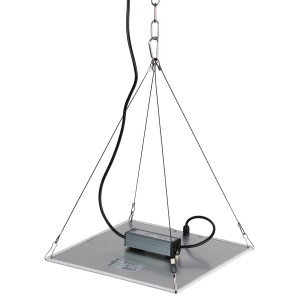 Печатная плата работает в дефорсированном режиме, ток на светодиодах уменьшен от номинального в два раза, в связи с этим удаётся достичь заявленной эффективности в 2 мкмоль/Вт*с. Прожектор оснащён тросовой системой подвеса, вилкой на проводе 1,5 м и выключателем. |