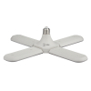 Блок питания и светодиоды расположены отдельно. LED-элемены размещены на алюминиевых платах. Каждая плата равномерно распределяет тепло, светодиоды не перегреваются и светят гарантированно 30 000 часов. Перфорация по центру корпуса обеспечивает вентиляцию драйвера. Прочный негорючий корпус базового белого цвета. На каждом лепестке по 36 светодиодов. Каждый лепесток поворачивается на 180 градусов. Длина лепестка — 15 см. |