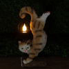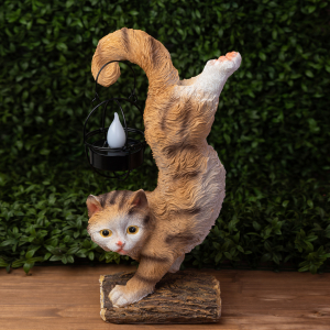 Описание: Фигурка садовая декоративная ЭРА ERASF22-01 станет очаровательным украшением Вашего загородного участка! Этот уличный светодиодный светильник можно разместить в саду, украсить им клумбу, альпийскую горку, подсветить тропинку или террасу на даче. Фигурка "Кот Акробат" высотой 37 см выполнена из полистоуна и имеет отличную детализацию. Беспроводной садовый фонарь работает на солнечной батарее - данный тип получения энергии является самым экологичным, энергоемким, а также бесшумным. Питание происходит во включенном режиме, днем, а с наступлением ночи фигурка сама загорается и работает до 8 часов. При необходимости фонарик можно снять с хвоста котика. Имитация горения свечи и мягкий теплый свет сделают Ваш вечер особенно уютным!