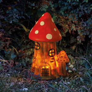 Описание: Фигурка садовая "Лукоморье" от компании ЭРА станет милым украшением Вашего загородного участка! Этот уличный светодиодный светильник, похожий на жилище гнома, оживит пейзаж дачи - разместите его в палисаднике, подсветите террасу, клумбу, кустарник, аллею или вход в дом. Фонарь ERASF22-13 высотой 23 см выполнен из полистоуна, все детали хорошо проработаны. Беспроводной садовый светильник функционирует на солнечной батарее - данный тип получения энергии является самым экологичным, энергоемким, а также бесшумным. Питание происходит во включенном режиме в солнечную погоду, фигурка автоматически загорается с наступлением ночи и работает до 8 часов. Сказочный домик с теплым светом и крышей в виде шляпки мухомора подарит вашему саду уют и загадочность!