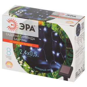 Описание: Гирлянда-бахрома ЭРА ERASF22-29 (арт. Б0053373) из светодиодных лампочек холодного белого свечения идеальна для декора беседки, веранды, фасада. 110 LED создают ровное яркое свечение, автоматически включаются с наступлением темноты. Длина гирлянды - 2,4 м, (длина провода - 2м, длина рабочей части - 2,4 м) высота бахромы - 0,5 м. Долговечная влагозащищённая гирлянда для сада - практичная покупка. Данная гирлянда уличная оснащена солнечной панелью, накапливающей энергию в течение светового дня, и не нуждается в подключении к электросети. Это значит, что гирлянду-бахрому ЭРА можно разместить в любои месте сада.