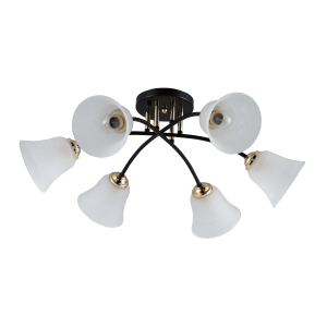 Описание: Rivoli Brenda (арт. 9099-306) - люстры потолочные из металла и стекла. Созданы дизайнерами итальянского бренда Rivoli. Люстры Brenda отличает традиционный дизайн, который подойдет для большинства интерьеров. Стеклянные плафоны люстры в гостиную Rivoli Brenda имеют форму колокольчика, их матовое покрытие делает свет более мягким. Поэтому люстры Brenda хороши и в спальню, и в детскую. Освещаемая площадь одной такой люстры - 18 м². Для данной люстры стоит купить 6 ламп Е27 мощностью 60 Вт. В коллекции есть люстры потолочные побольше - под 8 ламп (арт. 9099-308). Арматура люстры на кухню Brenda изготовлена из металла со стойким гальваническим покрытием. Выбрано трендовое сочетание цветов - черный и золото. Форма арматуры - лаконичная, плафоны направлены вниз, источники света расположены по кругу. Вы получите яркий комфортный свет и каждый день будете любоваться новой люстрой. Rivoli дает возможность купить качественную и красивую люстру по доступной цене.