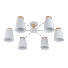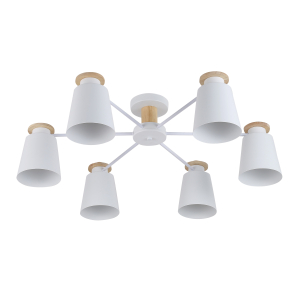 Rivoli Adna (арт. 9112-306) - красивая люстра на потолок с белой арматурой и 6 белыми металлическими плафонами. Декорирована элементами светлого дерева. Дизайн люстры создан в Италии. Люстра в гостиную Adna идеальна для интерьеров в скандинавском стиле, в стиле модерн, лофт, кантри. Плафоны отлично направляют свет вниз - такую люстру можно с успехом разместить на кухне, чтобы стол и рабочие поверхности были хорошо освещены.
