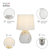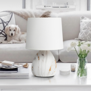 Настольная лампа Rivoli Damaris (арт. D7037-501) - красивое и практичное решение для вашего дома. Лампы настольные создают в помещении уют и комфортную атмосферу для отдыха. Данная лампа настольная от европейских дизайнеров имеет классический белый абажур из качественной ткани. Основание лампы изготовлено из керамики с расцветкой под мрамор в светлых тонах с яркими золотыми прожилками.