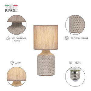 Rivoli Sabrina (арт. D7043-501) - настольный светильник бытовой интерьерный с тканевым абажуром. Дизайн создан в Италии в соответствии с современными тенденциями оформления интерьеров.