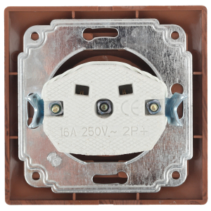 Описание: Розетка серии Intro Plano скрытой установки цвет венге 1-201-10. Номинальные характеристики 16А 250В. Розетка выполнена из керамики, укомплектована одноместной рамкой, оснащена винтовыми клеммами. Клеммы с двумя отверстиями позволяют соединять соседние розетки шлейфом. Установка в подрозетник производится как на монтажные лапки, так и на винты. Для установки 2-х и более устройств в несколько подрозетников в ряд дополнительно используются многоместные рамки: 2-х постовая - 1-502-хх, 3-х постовая 1-503-хх, 4-х постовая - 1-504-хх (где хх - цветовой код: 01 - белый, 02 - слоновая кость, 03 - алюминий, 04 - шампань, 05 - антрацит, 10 - венге, 11 - сосна).