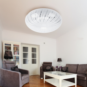 Плафон с узором-медузой идеально сочетается с выпуклым круглым корпусом. Эксклюзивный дизайн позволяет увеличить количество вариантов использования LED люстры. Изящное потолочное освещение получится обустроить в гостиной, прихожей или спальне.