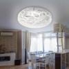 Плафон LED люстры декорирован изящным узором. Нежные ветки с лепестками гармонично смотрятся на круглом плоском корпусе. Такой светильник прекрасно подойдет для оформления гостиной, коридора, спальни или детской.