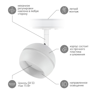 Описание: Однофазный трековый светильник под лампу с цоколем GX53 с плоским трековым адаптером. Корпус светильника выполнен из алюминия и пластика. Благодаря возможности использования лампы GX53 светильник можно сделать достаточно ярким, используя лампы 12-15W. Передняя часть плафона выполнена из опалового акрила, который, сужая угол рассеивания и снижая тем самым эффект ослепления, также выполняет декоративную функцию и делает светильник эстетически более привлекательным.