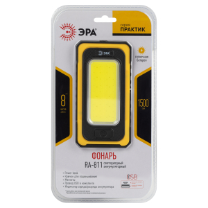 Стильный ручной фонарик ЭРА RA-811 в плоском прямоугольном корпусе выполнен в традиционном для серии Практик сочетании цветов - черный + желтый. Есть эргономичная ручка-крючок для удобного переноса или подвеса фонаря. Магниты на корпусе позволяют с легкостью фиксировать ЭРА Практик RA-811 на металлических поверхностях. Прорезиненные вставки защищают изделие при возможных падениях и ударах, которые неизбежны в рабочем процессе.