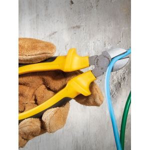 Описание: Эти кусачки используются для резки кабелей и проводов как при сторительстве, так и при мелком ремонте. Чтобы обеспечить большую прочность и долговечность изделия, его режущие части подверглись специальной термообработке. Кусачки, обладающие полированным шарниром, изготовлены из специальной углеродистой стали с фосфатированием, что вкупе со специальной закалкой на режущей кромке гарантирует более высокую стойкость товара. Изделие можно использовать во время работы с электричеством с максимальным напряжением до 1000 В переменного тока. Эргономичная форма ручек кусачек вместе с мягким их открыванием значительно облегчает работу и повышает комфорт от взаимодействия с инструментом.