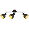 Rivoli Jessica - настенно-потолочный спот с 3 трендовыми металлическими плафонами. Внешняя сторона плафонов имеет черное матовое покрытие, внутренняя - покрытие золотого цвета. Преимущество настенно-потолочных светильников Jessica - поворотная конструкция плафонов, которая дает возможность индивидуально регулировать направление светового потока каждого плафона.