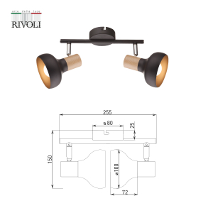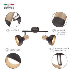 Спот поворотный металлический с 2 плафонами Rivoli Lorrany выполнен в популярном стиле лофт. При этом универсальный дизайн данного настенно-потолочного спота позволяет использовать его в самых разных пространствах - от традиционных до современных. Удачным решением стало сочетание черного матового цвета плафонов с отделкой элементов под светлое дерево.