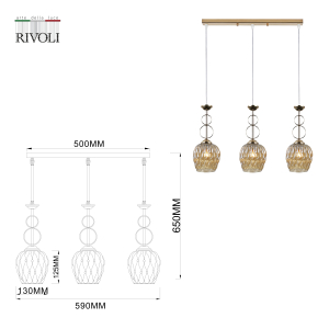 Rivoli Cindy (арт. 9119-203) – светильник подвесной в стиле модерн, оформление которого создано итальянскими дизайнерами. Люстра с 3 подвесными плафонами, расположенными в 1 ряд – актуальное решение в современных интерьерах. Подвесной светильник на тросах Rivoli Cindy – идеальная покупка для кухни или в спальню. Такие светильники потолочные подвесные размещают для подсветки обеденного или рабочего стола. Хорошим решением станет подвесной светильник-люстра Cindy как аналог прикроватного бра для организации освещения над прикроватными тумбочками.