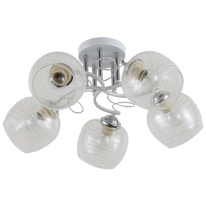 У вас есть возможность заказать люстры с качественным равномерным светом и эффектным дизайном по доступной цене. Металлический корпус окрашен в стильный белый цвет в сочетании с хромом, прозрачные стеклянные плафоны декорированы узором в виде полос.