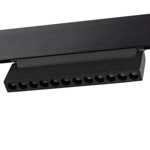 Описание: Магнитный трековый светильник TRM20-4-22-12W3K-B. Цветовая температура 3000К, индекс цветопередачи СRI>90. Мощность 12 ватт. Напряжение питания 48V. Материал корпуса алюминий. Световой прибор имеет вращающийся корпус, позволяющий регулировать направления светового потока, и угол рассеивания 30 градусов, что делает его идеальным источником света для создания акцентов в помещении и зонирования пространства.