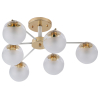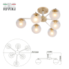 Rivoli Umbra (арт. 3129-306) - современная модерн-люстра в гостиную в бело-золотой гамме. Количество плафонов - 6 (люстры с 6 плафонами / люстры под 6 ламп). Круглые компактные плафоны поделены на 2 части - прозрачный верх и матовый низ. Матовое стекло люстры отлично рассеивает свет и устраняет блики, прозрачное обеспечивает отличную подсветку потолка, делая комнату визуально просторнее и светлее. Находиться в комнате, где установлены люстры потолочные Umbra от европейского бренда Rivoli, приятно комфортно. Света этой люстры хватает для качественного освещения площади до 18 м2.