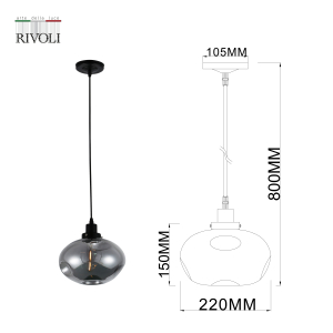 Подвесной светильник Rivoli Sabina (арт. 5134-201) с дымчатым стеклянным абажуром. Светильники потолочные итальянского бренда Rivoli отличаются изысканным дизайном, соответствующим современным трендам оформления интерьеров. Данный подвесной светильник с красивым выдувным плафоном из стекла может применяться как основная люстра или в качестве дополнительного освещения - как подвесной светильник над столом, подвесной светильник над барной стойкой, подвесной светильник в прихожей. Тонированный плафон смягчает световые блики. Трос базового черного цвета может быть отрегулирован по высоте при монтаже подвесного светильника-люстры. Рекомендованная лампа - Е27 40 Вт.