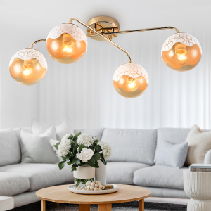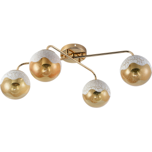Rivoli Avril - люстра на кухню, люстра в небольшую гостиную, люстра в маленькую спальню. Создана итальянскими дизайнерами бренда Rivoli, предлагающим стильные европейские люстры по доступной цене. Люстры коллекции Avril Rivoli выполнены в золотом цвете. Круглые стеклянные плафоны люстры в верхней части декорированы покрытием с эффектом кракле. Люстры Avril выполнены в стиле модерн и станут яркой деталью интерьера. Данная люстра с 4 золотыми плафонами освещает 12 м2. С современными люстрами Rivoli Avril применяются лампы Е27 60 Вт.