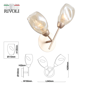 Бра Rivoli Carrie с двумя фигурными стеклянными плафонами позволяет организовать досветку пространства до 6 м2. Плафоны из качественного тонированного стекла направлены вверх. Конструкция бра напоминает ветку цветущего дерева или растения с бутонами цветов. Эффектный флористичный дизайн – популярное решение для стиля модерн. Необычен и цвет корпуса настенного светильника Carrie – белое золото. |