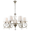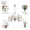 Описание: Rivoli Beatrix – коллекция классических люстр и бра для гостиной, спальни, загородного дома, ресторана, гостиницы. Артикулы для поиска: 2067-305, 2067-307, 2067-401. Коллекция создана итальянскими дизайнерами. Её отличительные особенности: декор в виде хрустальных подвесок, окрашивание металлического корпуса в цвет античной бронзы, рожки в виде завитков с плавными формами, белые тканевые плафоны в формате абажуров. Данная люстра потолочная под 7 ламп Е14 40 Вт освещает площадь до 21 м2. Подвес люстры можно отрегулировать по высоте при монтаже на потолок. Ткань плафонов грязестойкая, не собирает пыль и легко моется. Дизайн элегантных рожков люстры напоминает узелки. Корпус из прочного лёгкого металла.