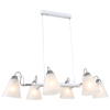 Описание: Люстра подвесная потолочная с 6 стеклянными матовыми плафонами - Rivoli Daisy, арт. 5080-306. Корпус люстры окрашен в белый цвет, есть эффектные дизайнерские детали с хромированием. Рожки люстры на тросах Daisy перпендикулярно размещены на лаконичной каркасной рейке. Свет плафонов люстры направлен вниз, что делает подвесные люстры Rivoli Daisy удачным решением для размещения над обеденным столом. Люстры потолочные подвесные хорошо подсвечивают столешницу, создают уют и зонируют пространство. Подвесные люстры – одно из популярнейших решений в современном дизайне интерьеров. Если вы хотите преобразить квартиру после ремонта, рекомендуем купить Rivoli Daisy в качестве люстры на кухню, люстры в гостиную, люстры в столовую. Коллекцию дополняет бра настенное Rivoli Daisy – арт. 5080-401.