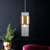Подвесной светильник Rivoli Donna (арт. 3149-201) под лампу Е14 мощностью 40 Вт. Подвесной цилиндрический плафон из прозрачных стеклянных трубочек отлично пропускает свет, качественно подсвечивая столешницу. Освещаемая площадь данной подвесной люстры – до 3 м2. Металлические элементы цвета французское золото гармонично дополняют стекло и придают этой люстре подвесной в стиле модерн богемное настроение в современных интерьерах. Если вы любите классику и при этом хотите создать трендовый интерьер, стоит купить золотой подвес, золотой светильник подвесной Rivoli Deborah.