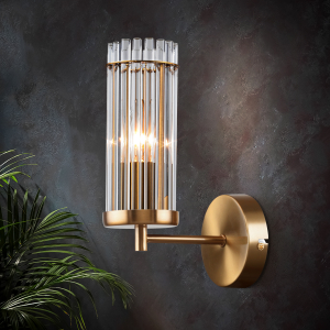 Описание: Бра Rivoli Dolly (арт. 2074-401) со стеклянным плафоном и металлическим корпусом цвета латуни. Бра настенное выполнено в классическом стиле, оформлено итальянскими дизайнерами. Настенный светильник бра Rivoli Dolly прекрасно подходит для набирающего популярность стиля современная классика. Вытянутый цилиндрический плафон данного бра на стену состоит из стеклянных трубочек, что выглядит очень эффектно. Стекло бра отлично пропускает свет, что обеспечит покупателя качественным дополнительным освещением. Бра Dolly над кроватью позволит читать перед сном, не портя зрение. Рекомендуем купить для данного настенного светильника лампу Е14 мощностью 40 Вт.