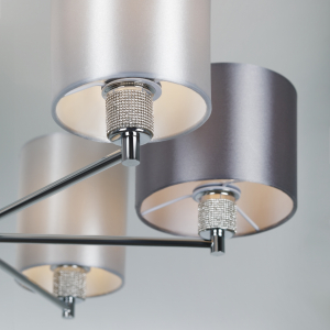 Описание: Потолочные люстры Rivoli Ebony (арт. 2081-306) классические люстры с благородными деталями. Абажуры красивого серого и серебристого цветов изготовлены из прочной интерьерной ткани, которая не выцветет со временем. Эти люстры прекрасная покупка, которая продемонстрирует ваш замечательный вкус и будет радовать долгие годы. Хромированная арматура потолочной люстры Ebony от итальянского бренда Rivoli декорирована мелкими камнями кристальной огранки. Идеально подойдет также и на натяжной потолок. Лампа для люстры в спальню или в гостиную Ebony - Е14 40 Вт. Коллекция укомплектована люстрой на 8 ламп (2081-308), бра (2081-401) и настольной лампой (7081-501).