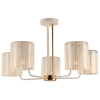 5-рожковая люстра на двух штангах – белого и золотого цветов. Плафоны люстры на потолок Rivoli Evonne (арт. 2088-305) изготовлены из стекла с чередованием прозрачных и матовых участков. Дизайнерскую коллекцию Evonne в классическом стиле дополняют люстры 7-рожковые (арт. 2088-307) и настенное бра (арт. 2088-401).