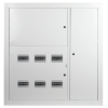 Описание: Щиты этажные металлические ТМ ЭРА SIMPLE предназначены для сборки учетно-распределительных устройств в жилых и общественных зданиях, а также для защиты отходящих линий при перегрузках и коротких замыканиях. Сварной металлический корпус состоит из трех отсеков: вводно-учетного, распределительного, отсека слаботочного оборудования. В вводно-учетном и распределительном отсеках размещены перфорированные DIN рейки для крепления счетчиков (по количеству квартир) рейки для крепления модульного оборудования и монтажная панель для крепления отводов от силового кабеля. Отсек слаботочного оборудования снабжен перфорированными DIN рейками и монтажной панелью для удобной прокладки и монтажа систем теле- и радиосетей, телефонных линий, сетей охранной сигнализации, домофонов. Щиты изготовлены из стали 0,8 -1,2 мм, покрыты полиэфирной порошковой краской RAL 7035 . Размер ниши 876х864х125